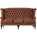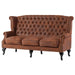 ヴィンテージレザー調ファブリックチェスターフィールド3シーターウイングバックソファ