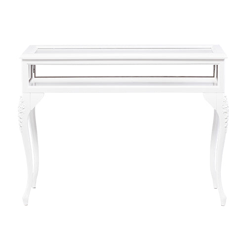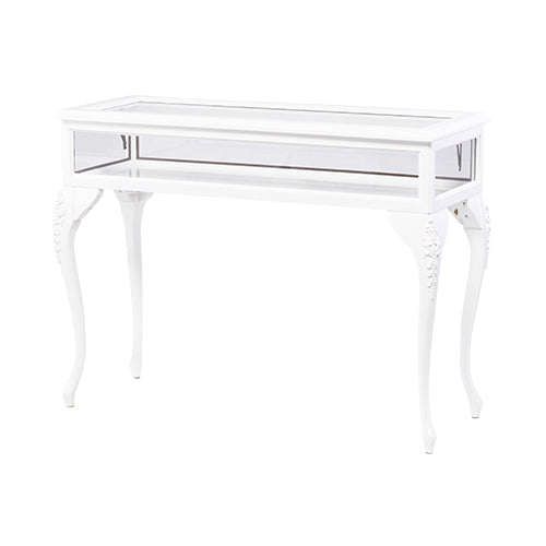 【コメント】ロココ調の優雅な曲線脚とブラックフレームのショーケース。天板はガラスを採用し開閉できる仕様。アクセサリーや腕時計、香水、コレクション小物などを「しまう」ではなく「魅せる」収納へと変えてくれます。側面には透明感の高いアクリルを使用。ガラスのようなクリアな見た目で、中に飾ったアイテムが...