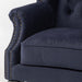 ロイヤルネイビーブルーファブリックチェスターフィールドウイングバックソファ(チェア)