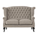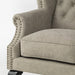 ライトグレーPUレザーチェスターフィールドウイングバックソファ