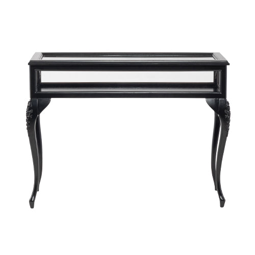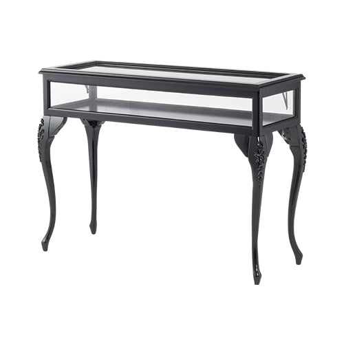 【コメント】ロココ調の優雅な曲線脚とブラックフレームのショーケース。天板はガラスを採用し開閉できる仕様。アクセサリーや腕時計、香水、コレクション小物などを「しまう」ではなく「魅せる」収納へと変えてくれます。側面には透明感の高いアクリルを使用。ガラスのようなクリアな見た目で、中に飾ったアイテムが...