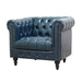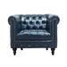 ネイビーブルーPUレザーコンパクトチェスターフィールドシングルソファ VINCENT